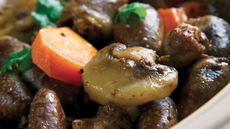 Ajoutez les gésiers et foies de poulet coupés en deux et faites colorer.